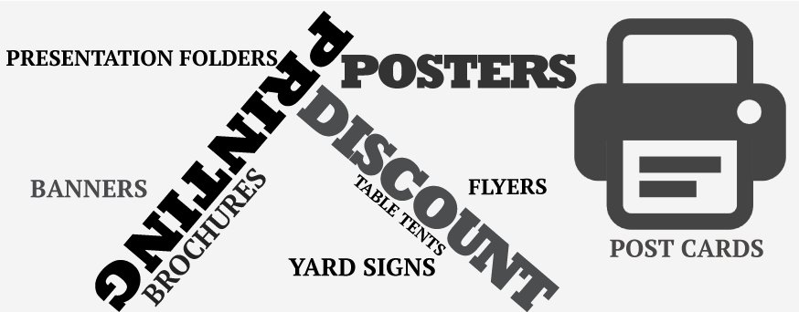 DISCOUNT PRINTING OF BROCHURES, BANNERS, PRESENTATION FOLDERS, POSTERS, YARD SIGNS, POST CARDS, FLYERS, TABLE TENTS, AND MORE AND MORE AND MORE